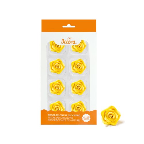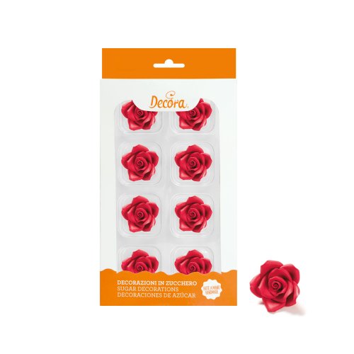 Rose di zucchero pronte all’uso. Realizzate a mano con coloranti di estrazione naturale. Perfette per decorare facilmente torte, cupcakes, biscotti e dolcetti. La confezione contiene 8 pezzi.