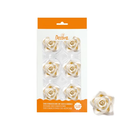 Rose di zucchero pronte all’uso. Realizzate a mano con coloranti di estrazione naturale. Perfette per decorare facilmente torte, cupcakes, biscotti e dolcetti. La confezione contiene 6 pezzi.